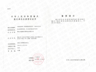 中華人民共和國(guó)報(bào)關(guān)單位注冊(cè)登記證書(shū)