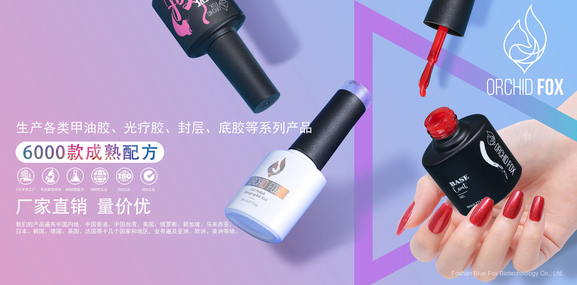 佛山市藍(lán)狐生物科技有限公司(原廣州甲逸妝品有限公司)位于廣東省佛山市科技工業(yè)園內(nèi),擁有自主研發(fā)的生產(chǎn)基地,十萬(wàn)級(jí)GMP化妝品生產(chǎn)車間,高級(jí)實(shí)驗(yàn)室和研發(fā)團(tuán)隊(duì),和商品進(jìn)出口權(quán),已獲得歐美ISO22716、GMPC質(zhì)量體系及SGS認(rèn)證. 公司致力于美甲產(chǎn)品的研發(fā)和生產(chǎn),主要生產(chǎn)美甲膠、指甲油、Polygel、水晶粉、光療延長(zhǎng)膠、底膠、封層、各種功能膠及大包裝基料。現(xiàn)公司旗下創(chuàng)立“甲逸 ” “十指繡””SZXvenus””O(jiān)RCHID FOX”美甲品牌,提供各類美甲OEM/ODM代加工基料及產(chǎn)品備案服務(wù),公司擁有雄厚的科研力量和高效的生產(chǎn)能力,同時(shí)在不斷提高產(chǎn)品質(zhì)量并開(kāi)發(fā)新產(chǎn)品,形成了廣泛的銷售網(wǎng)絡(luò),已得到國(guó)內(nèi)外客戶高度認(rèn)可。 我們始終追求“以人為本,誠(chéng)實(shí)守信”的經(jīng)營(yíng)理念,并貫徹于研發(fā)、生產(chǎn)、銷售和售后服務(wù)的各個(gè)環(huán)節(jié)。公司堅(jiān)持開(kāi)發(fā)環(huán)保優(yōu)質(zhì)的美甲產(chǎn)品,倡導(dǎo)美甲行業(yè)健康發(fā)展!